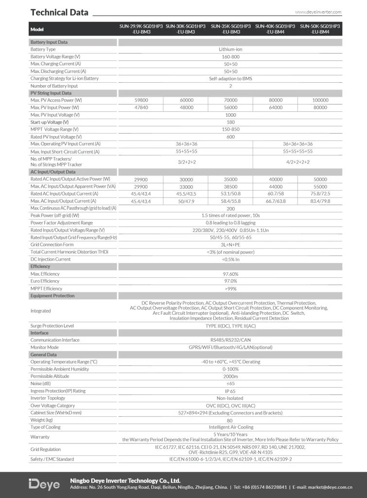 Max. 10 pcs parallel for on-grid and off-grid operation; Support multiple batteries parallel