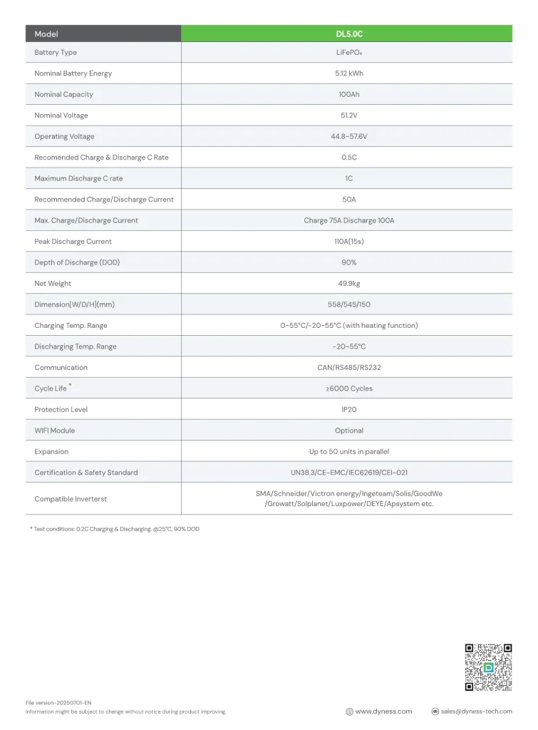 DYNESS DL5.0C 51.2V/100Ah Low-voltage Lithium battery
