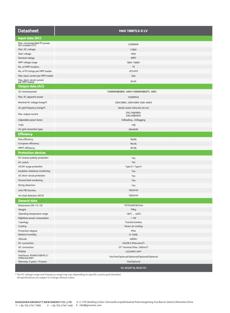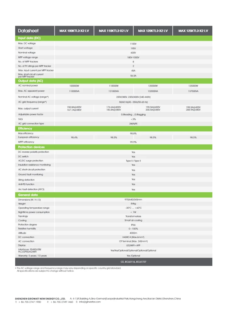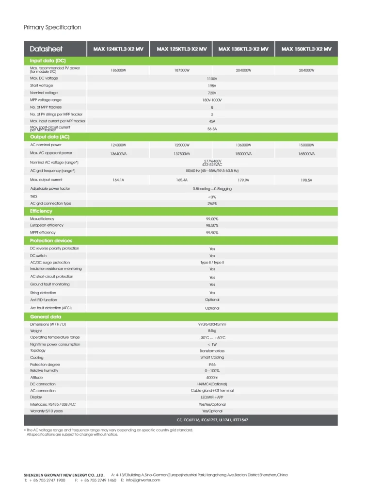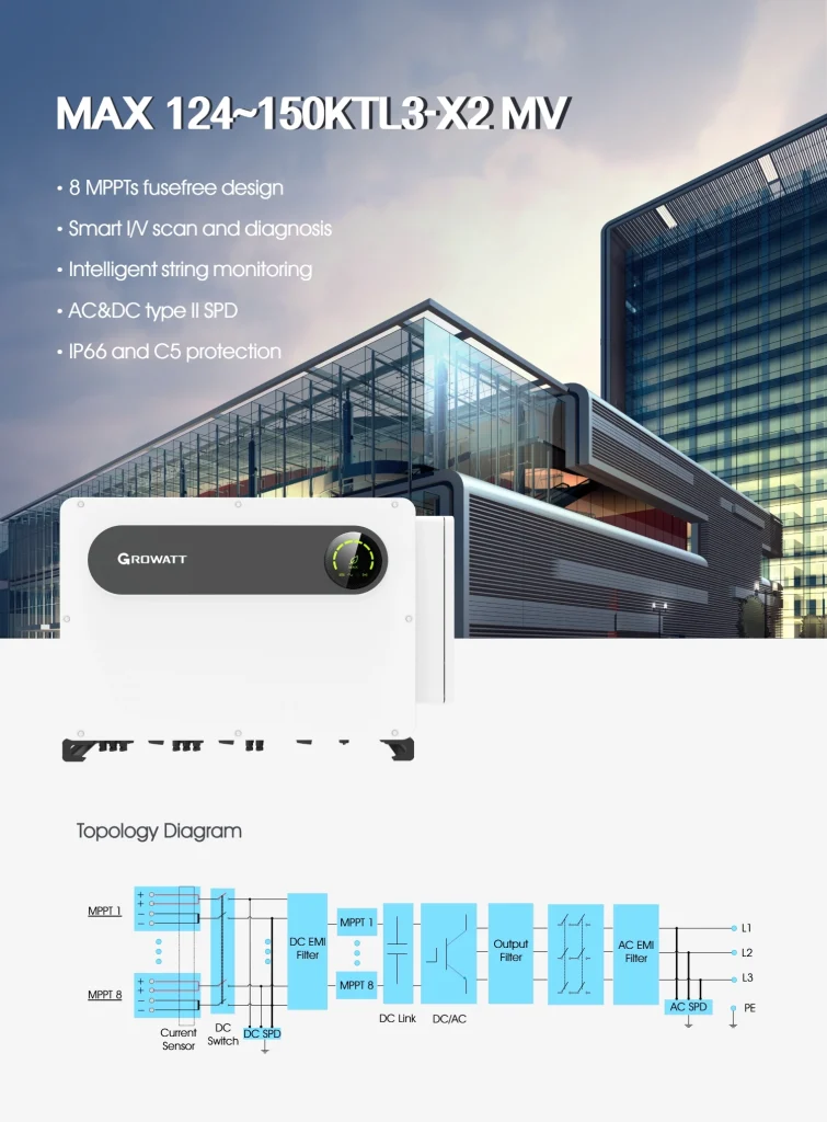 Growatt MAX 100-150KTL3-X2 LV/MV High-voltage Three-Phase On-grid inverter