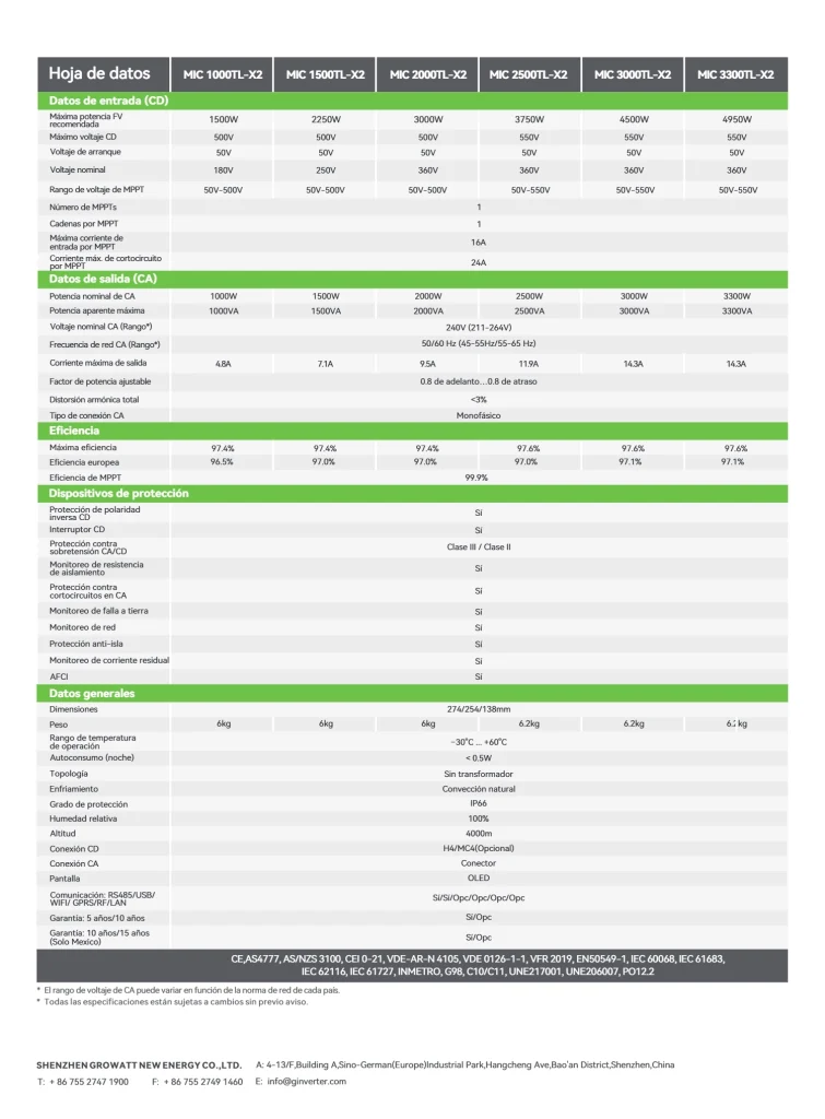 Growatt MIC 1000-3300TL-X2 Low-voltage Single-Phase On-grid inverter