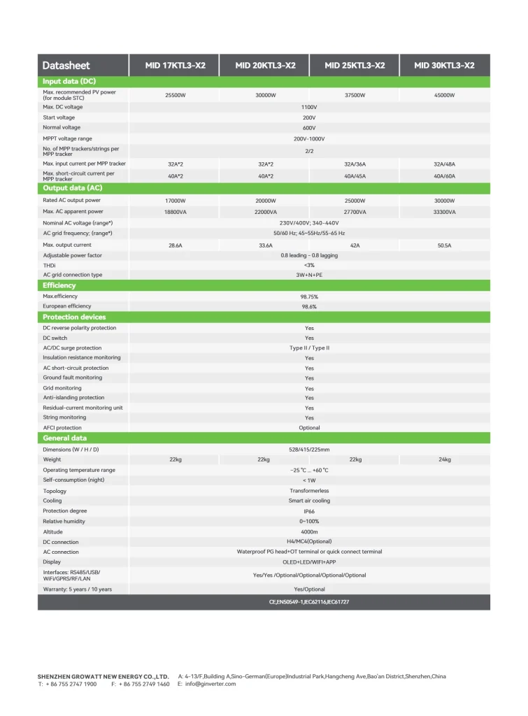 Growatt MID 17~30KTL3-X2 High-voltage Three-Phase On-grid inverter