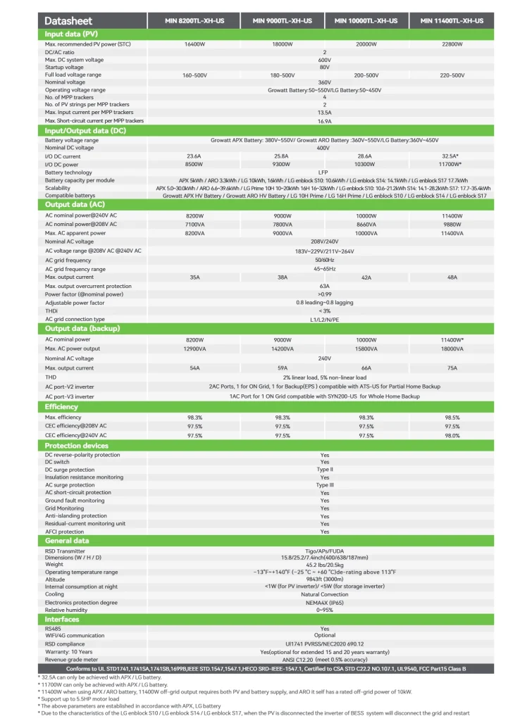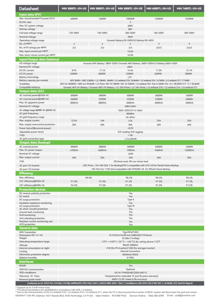 Growatt MIN 3000-11400TL-XH-US High-voltage split-phase Hybrid inverter