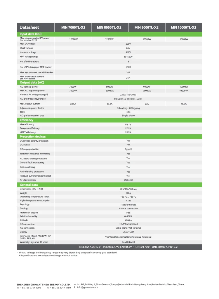 Growatt MIN 7000~10000 TL-X2 Low-voltage Single-Phase On-grid inverter
