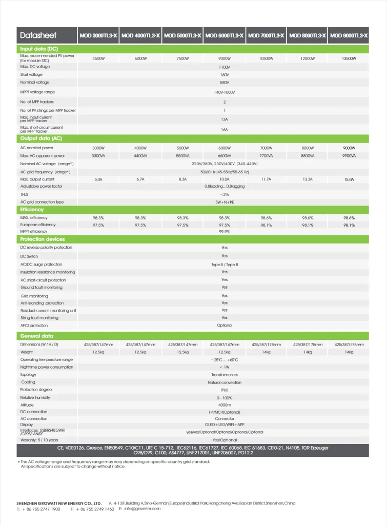 Growatt MOD-3000~9000TL3-X High-voltage Three-Phase On-grid inverter