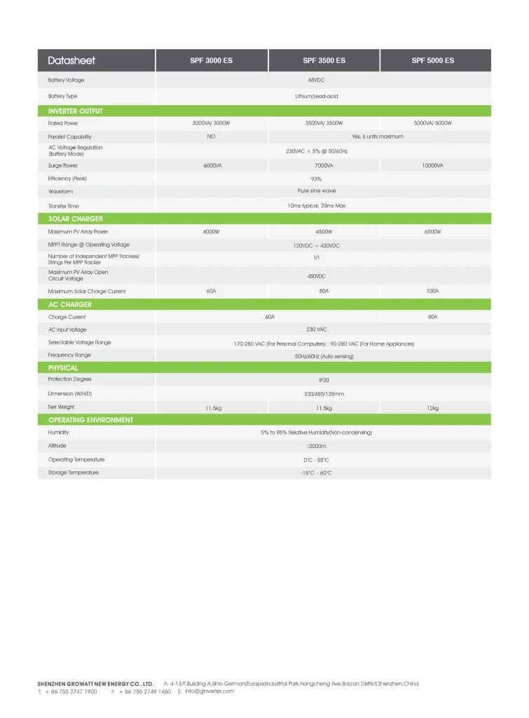 Growatt spf5000es specific information