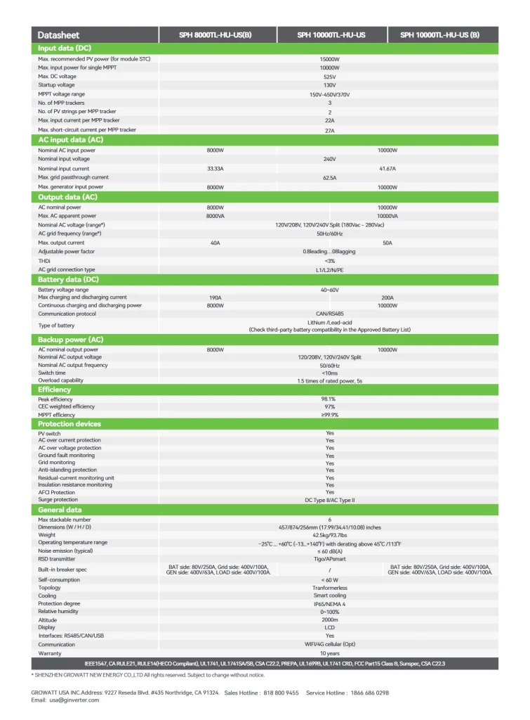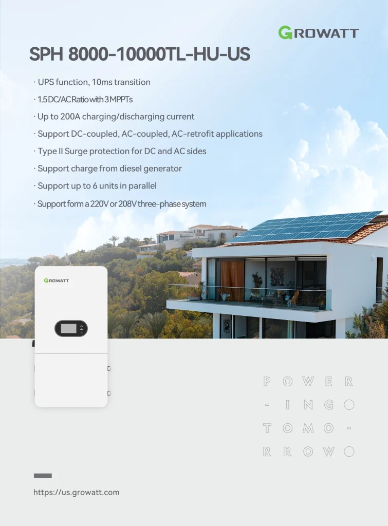 Growatt SPH 8000-10000TL-HU-US Low-voltage Split Phase Hybrid inverter