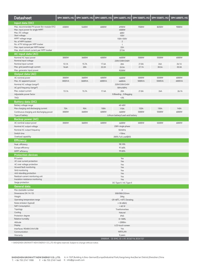 Growatt SPM 3000-6000TL-HU Low-voltage Single Phase Hybrid inverter