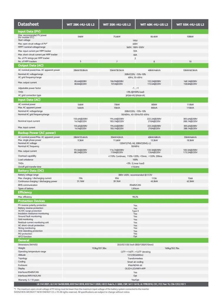 Growatt WIT 28-55K-HU/AU-US L2 High-voltage Three Phase split-phase Hybrid inverter