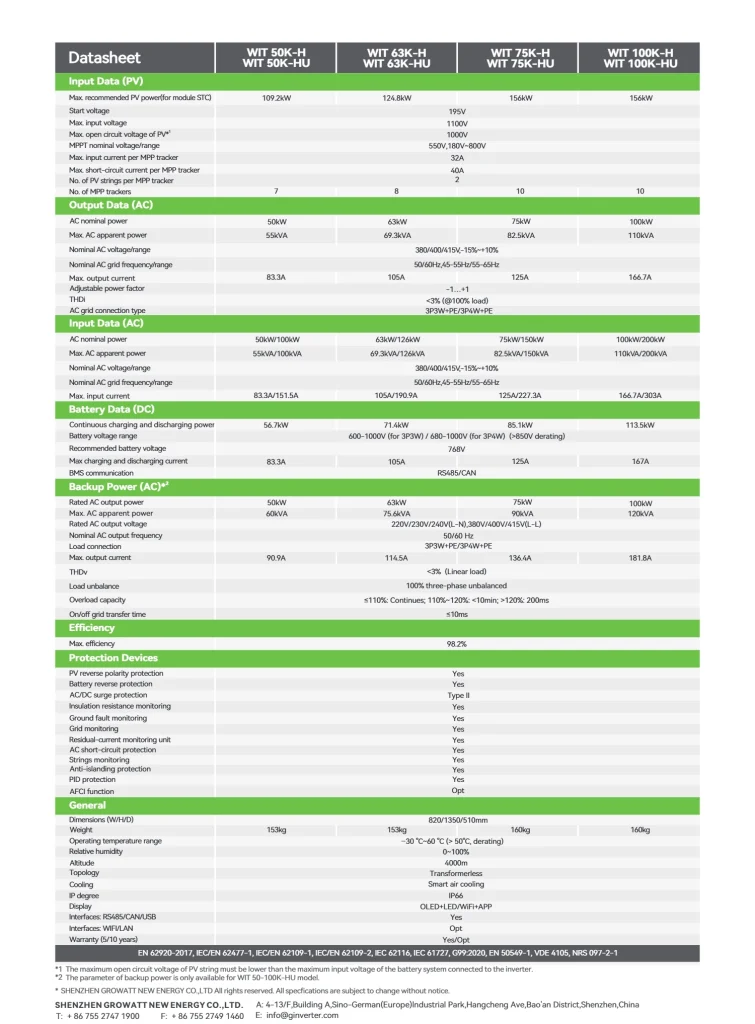 Growatt WIT 50-100K-HU/AU High-voltage Three Phase Hybrid inverter