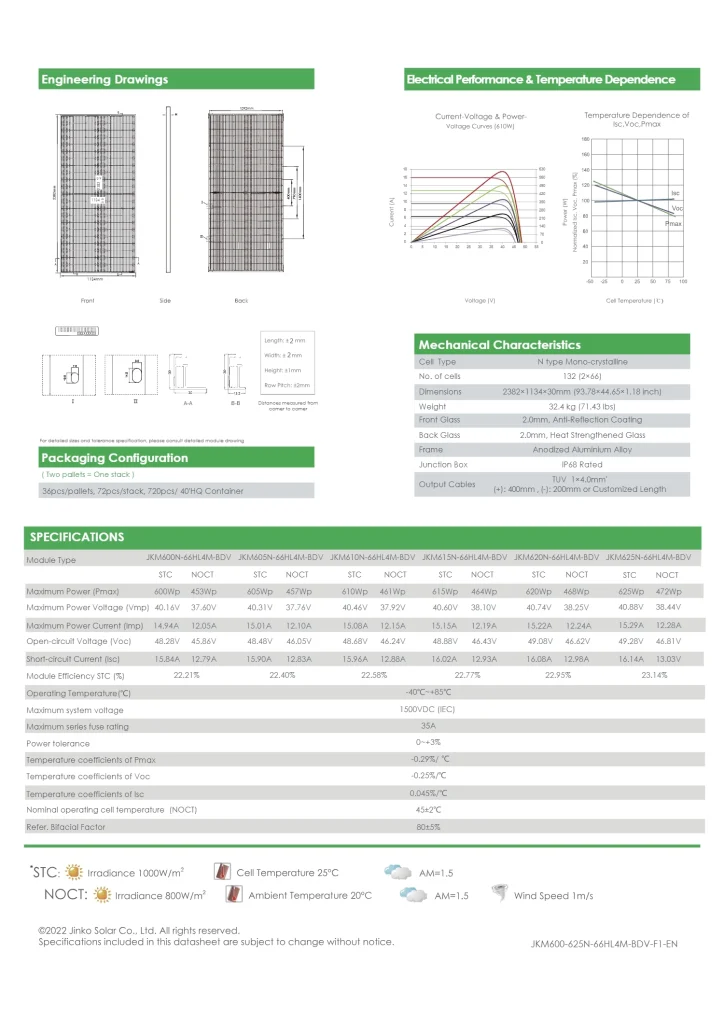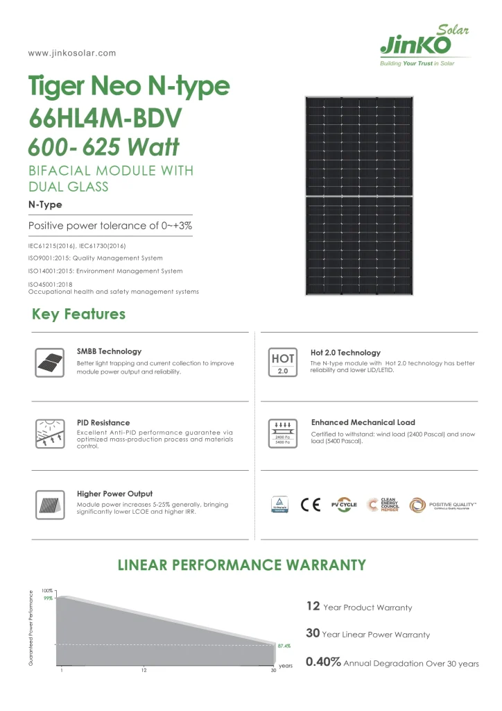 JinKo 66HL4M-BDV 600-625W Dual glass solar panels