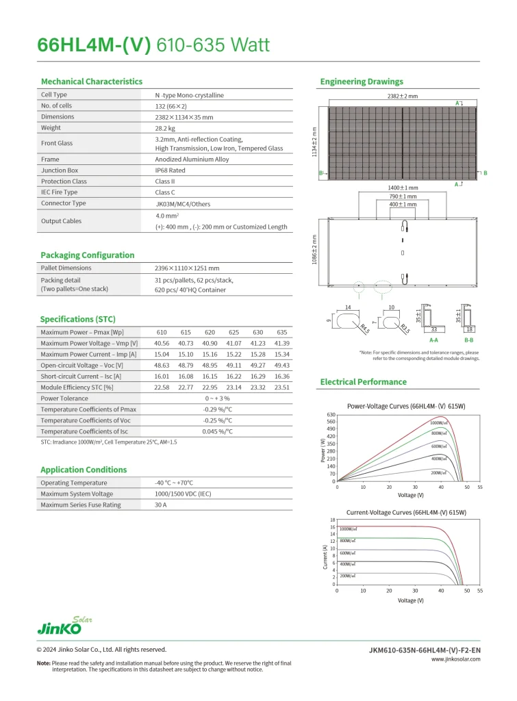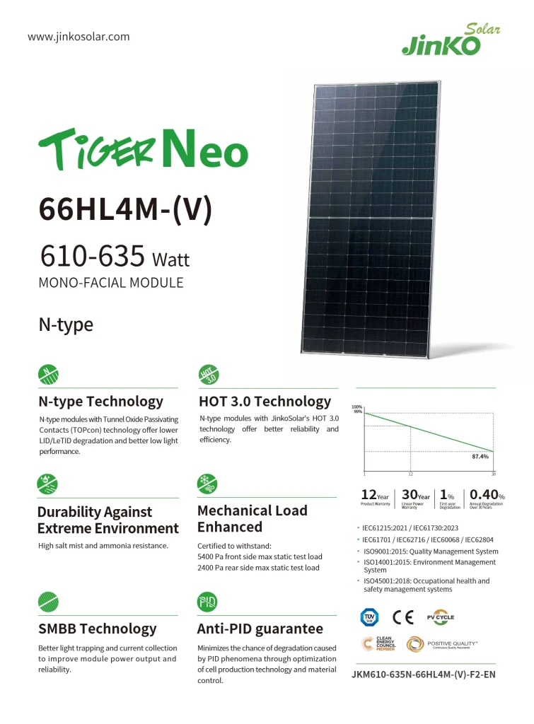 JinKo 66HL4M-(V) 610-635W Single glass solar panels