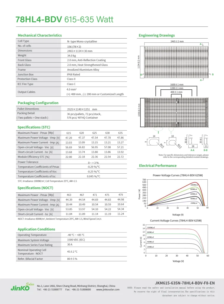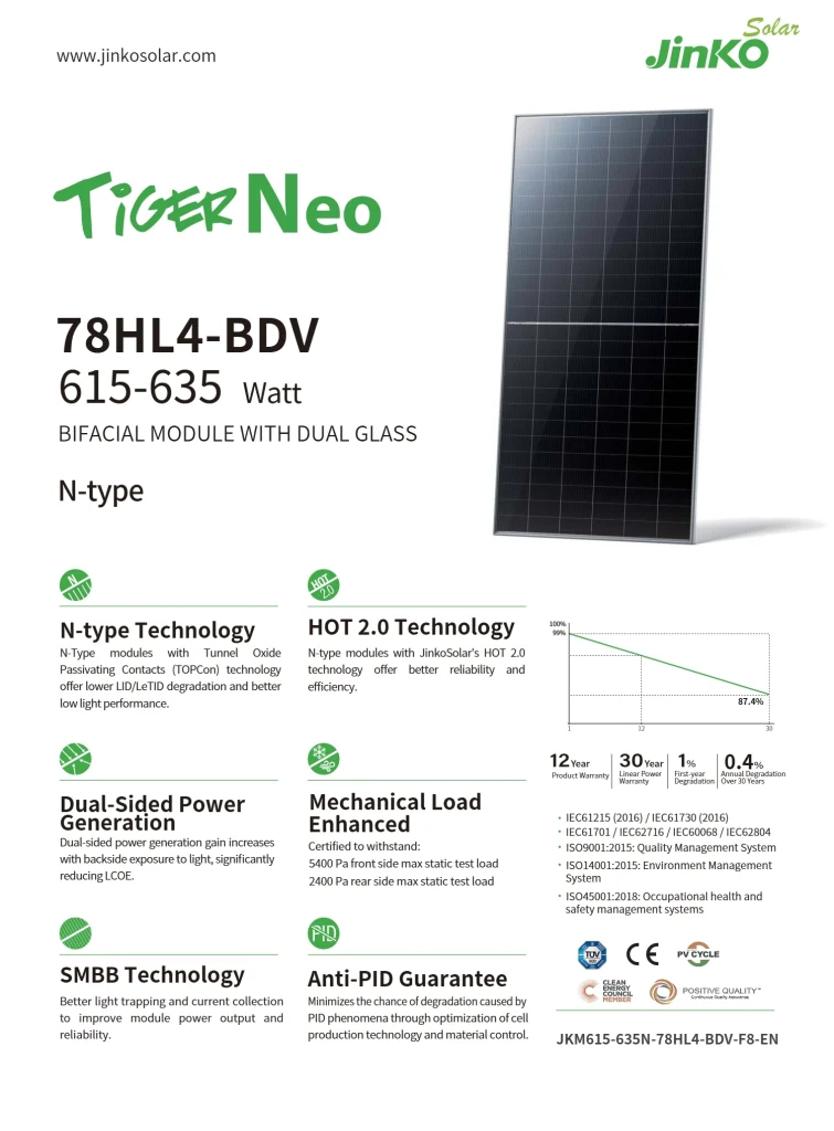 JinKo JKM-78HL4-BDV 615~635W Dual glass solar panels
