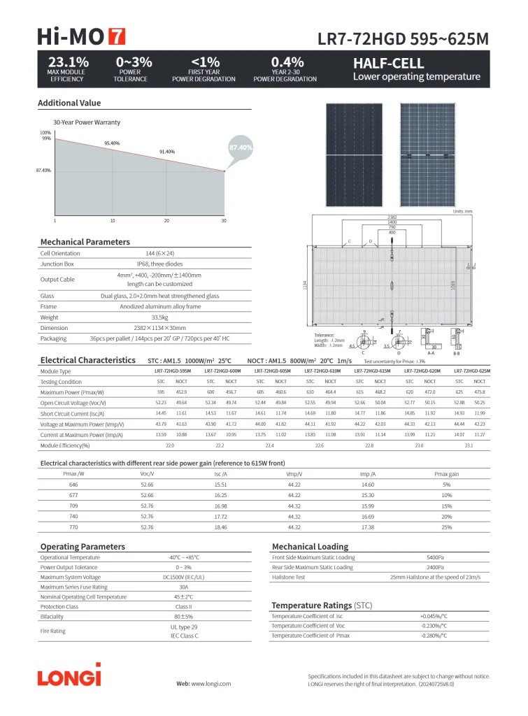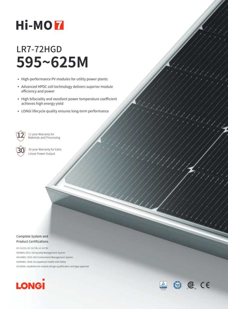 Longi Hi-MO 7 LR7-72HGD 595~625M Dual glass solar panels