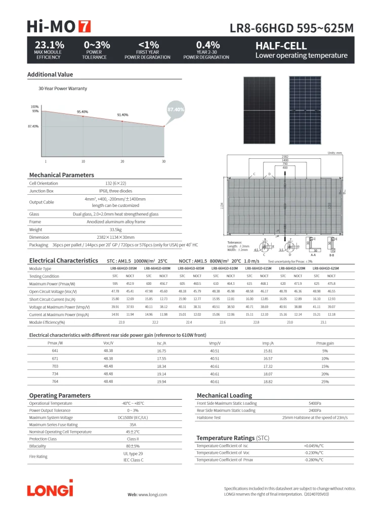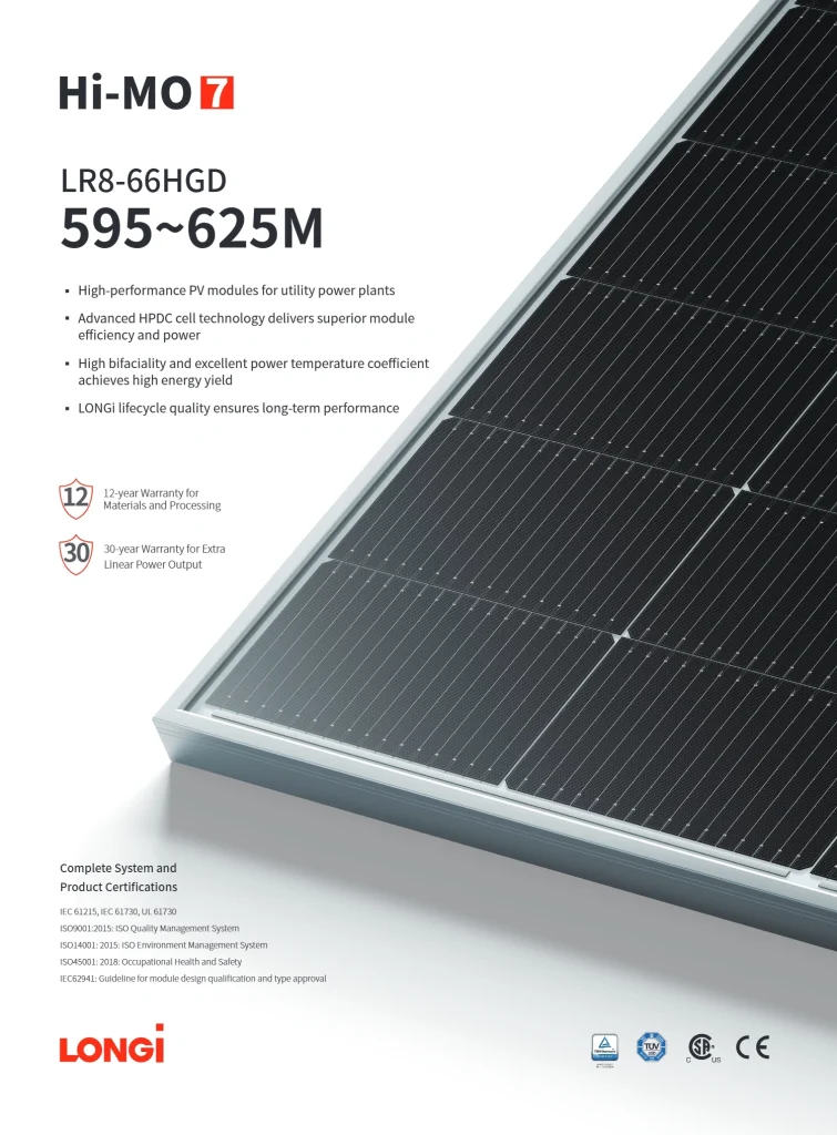 Longi Hi-MO 7 LR8-66HGD 595~625M Dual glass solar panels
