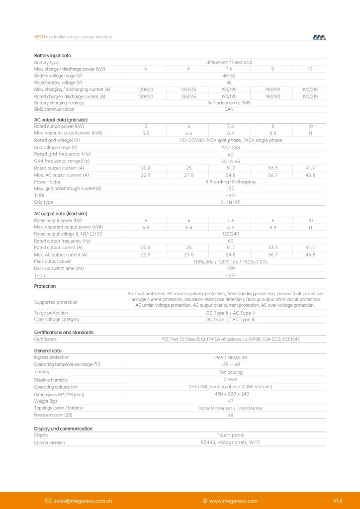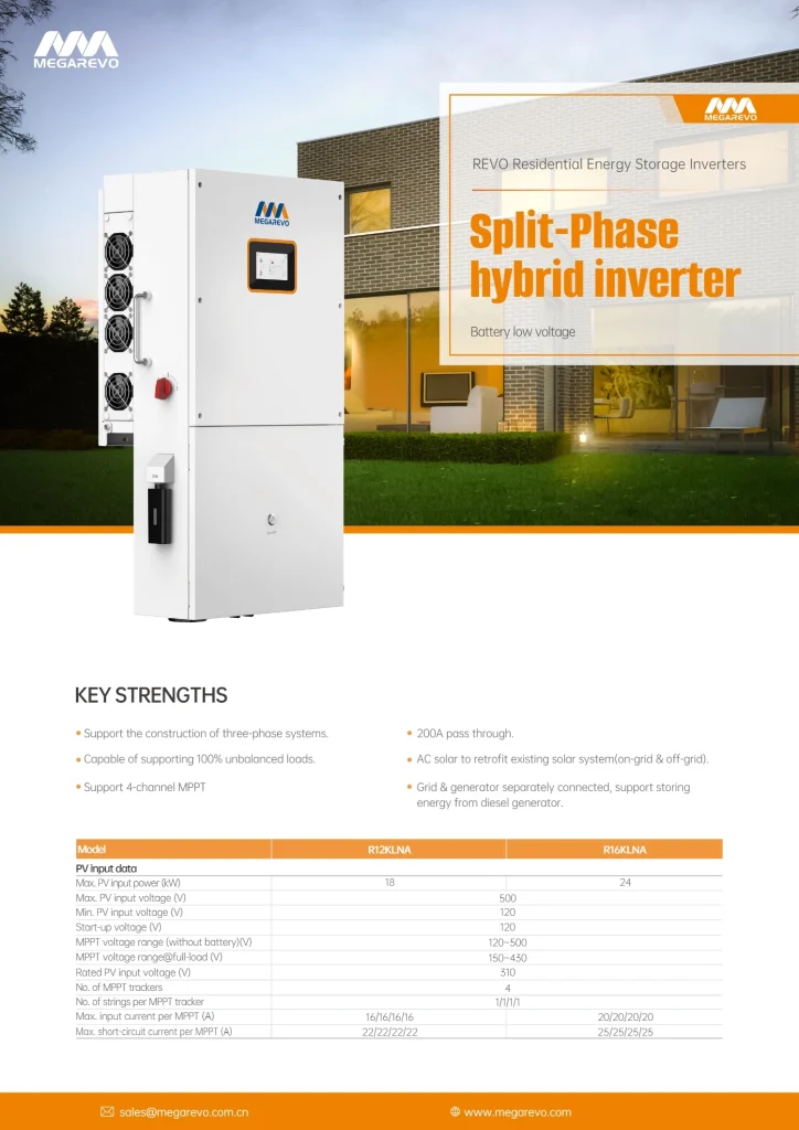 Megarevo American Split-Phase Hybrid Inverter R5~16KH2NA Low-voltage Split-Phase hybrid inverter