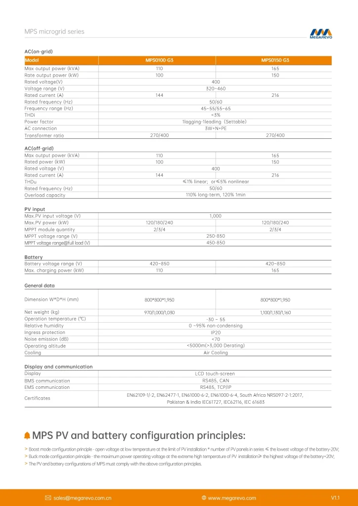- Output voltage level, control strategy, etc, can be configured according to site requirements to ensure that the product