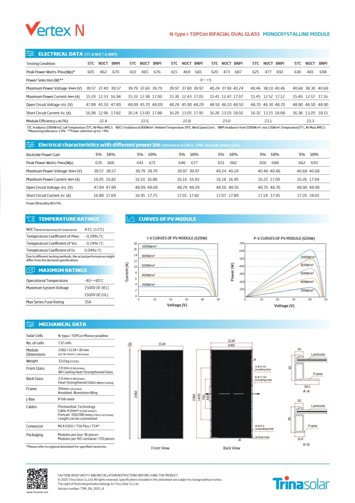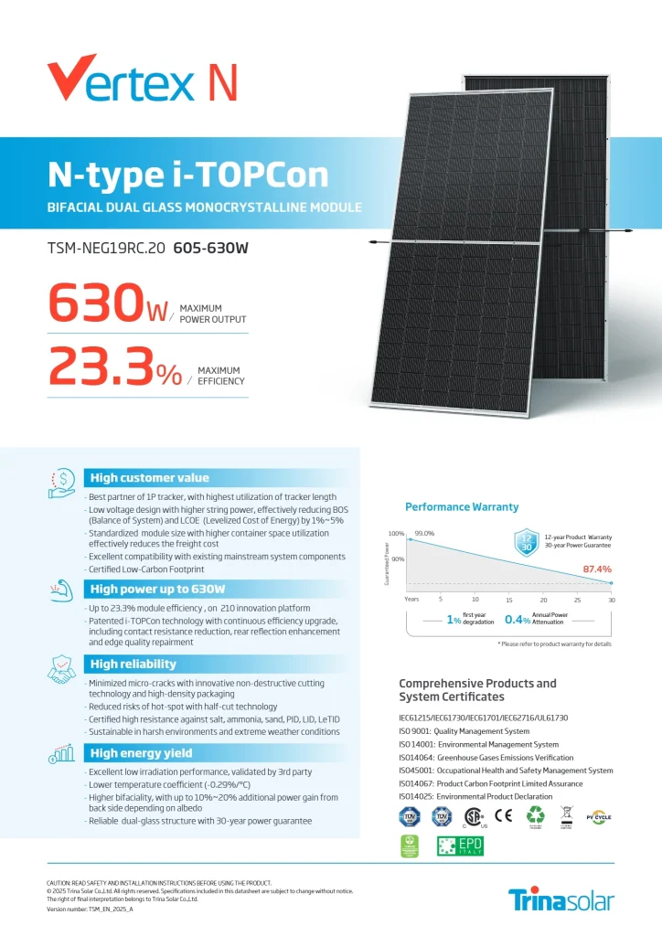 Trina TSM-NEG19RC.20 605-630W Dual glass solar panels