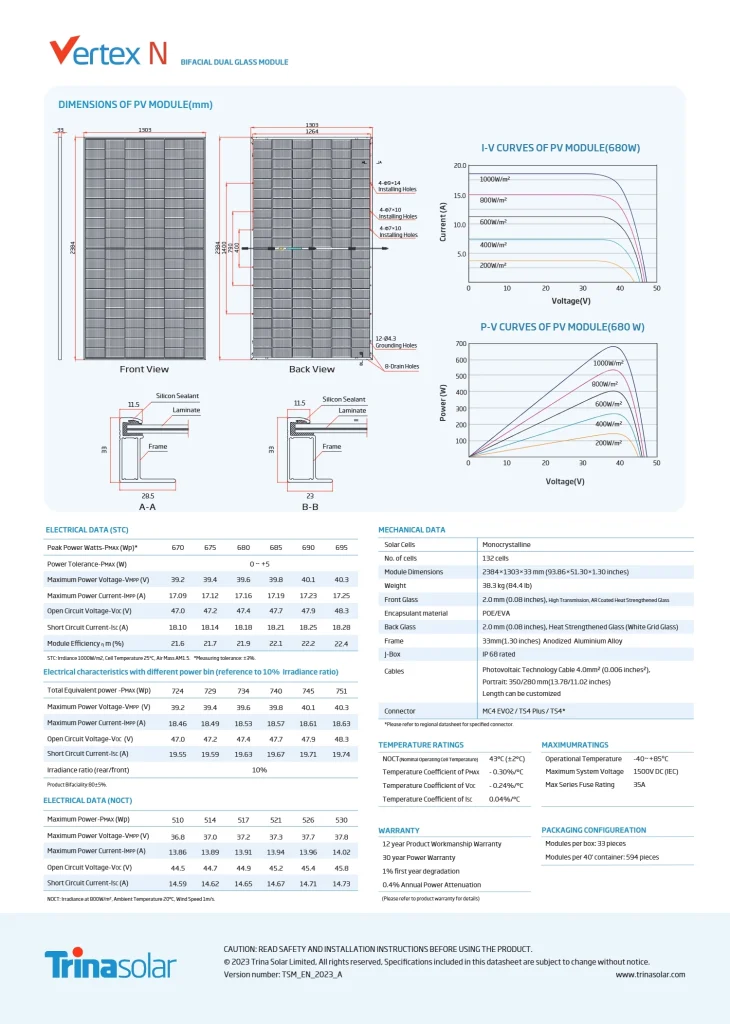Trina TSM-NEG21C.20 670-695W Dual glass solar panels