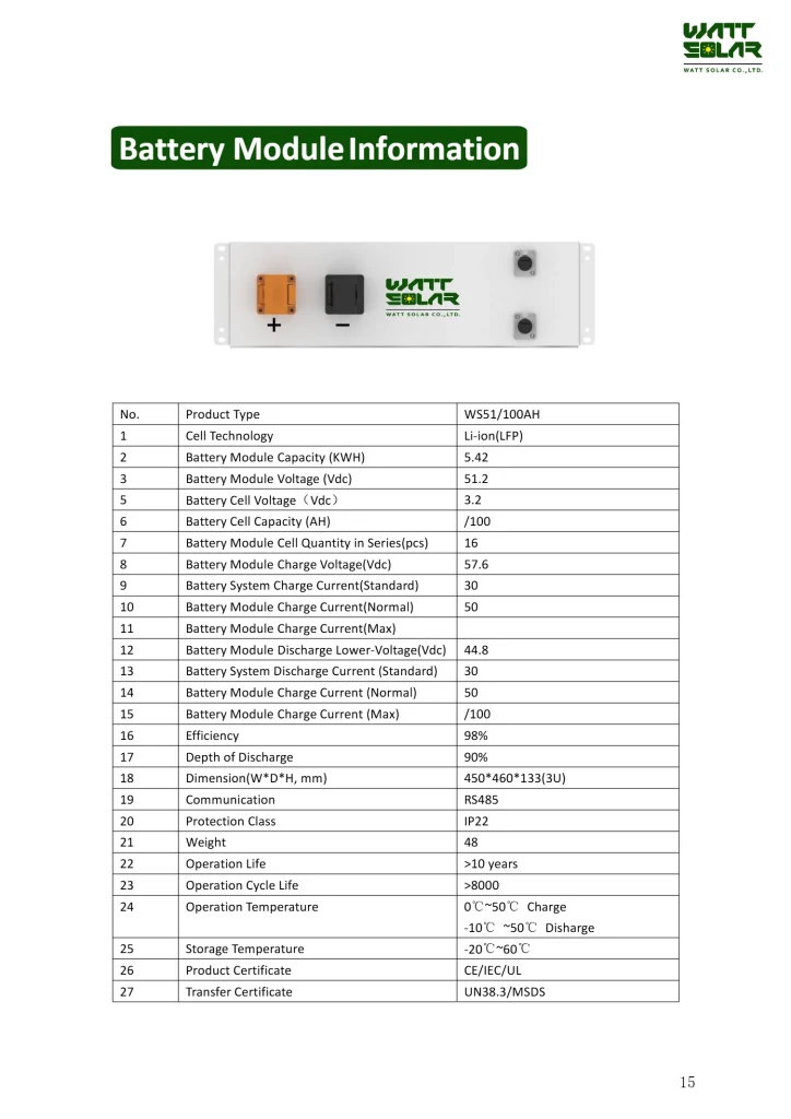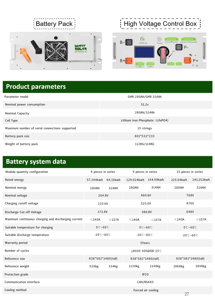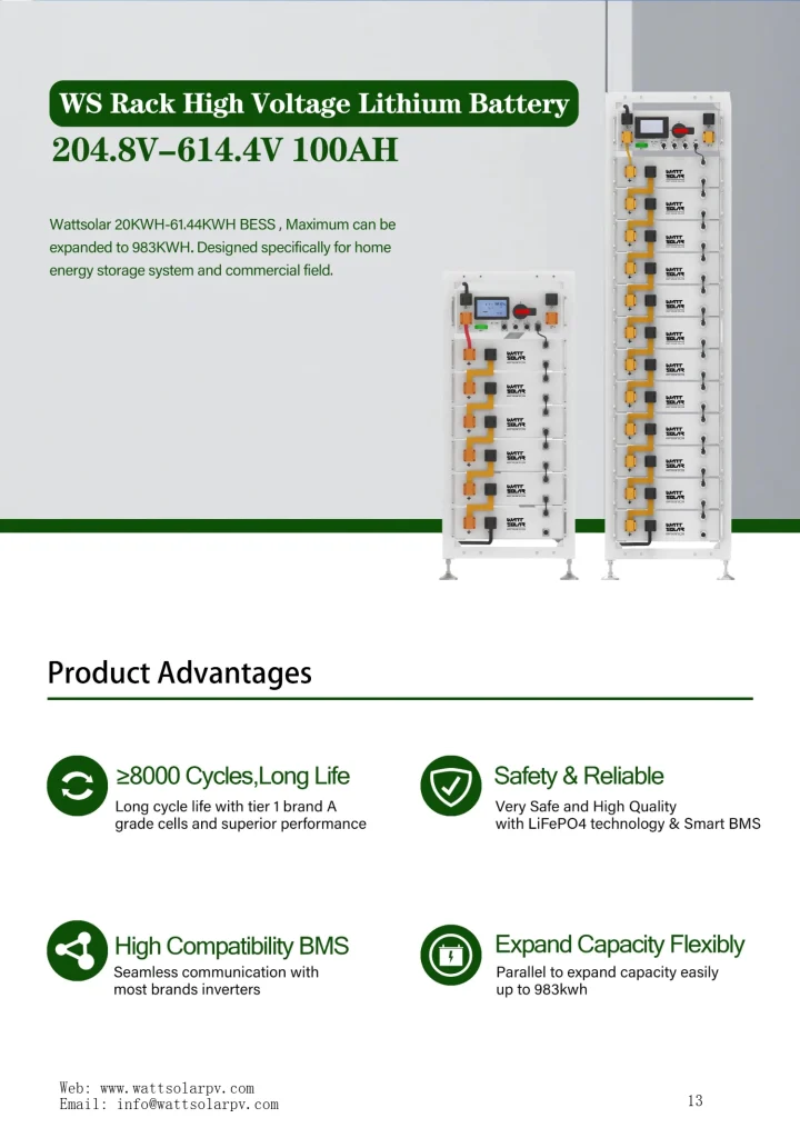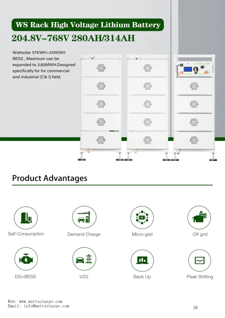 - Wattsolar high-voltage lithium battery: 20-241 kW