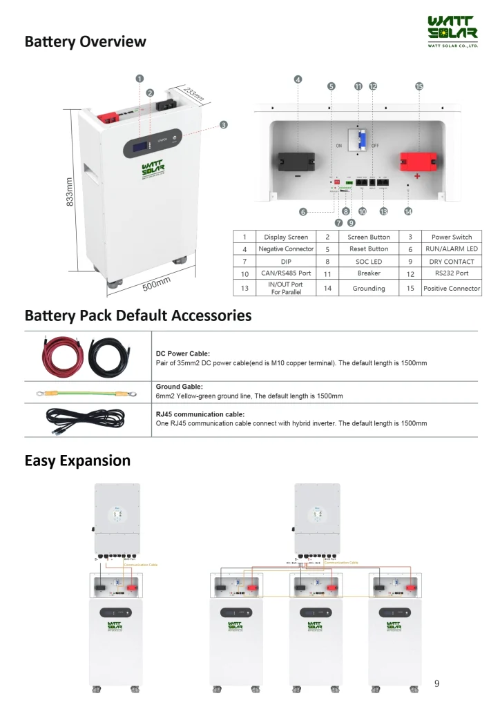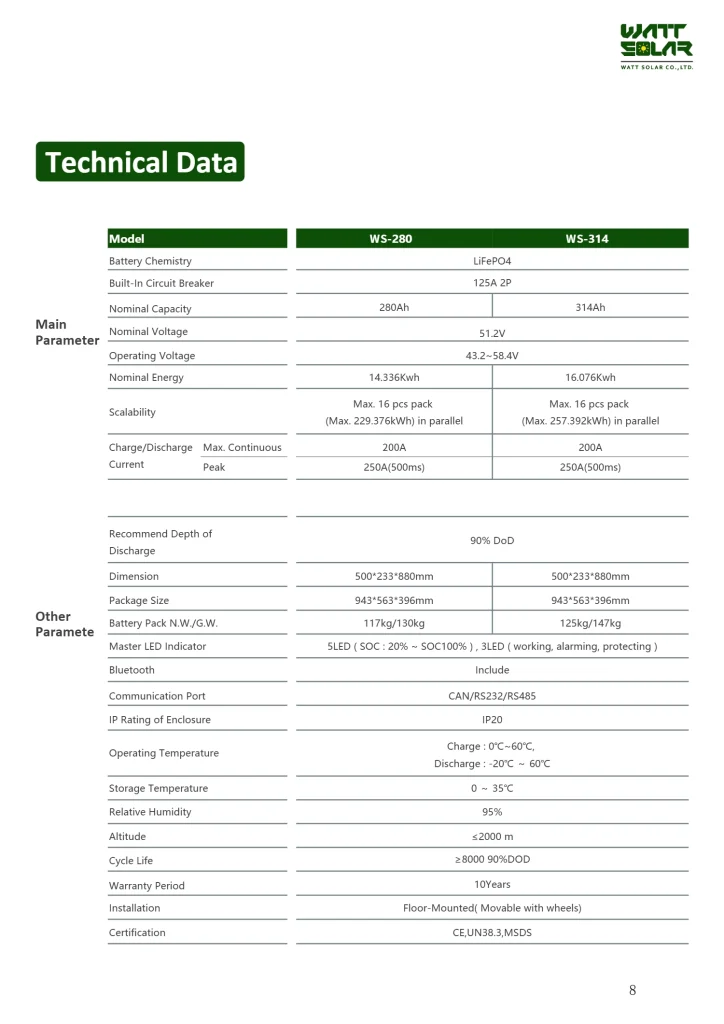 - Wattsolar low-voltage lithium-ion battery: 14-16 kW