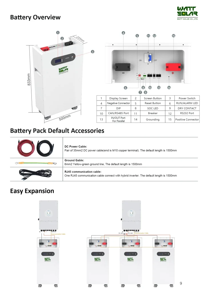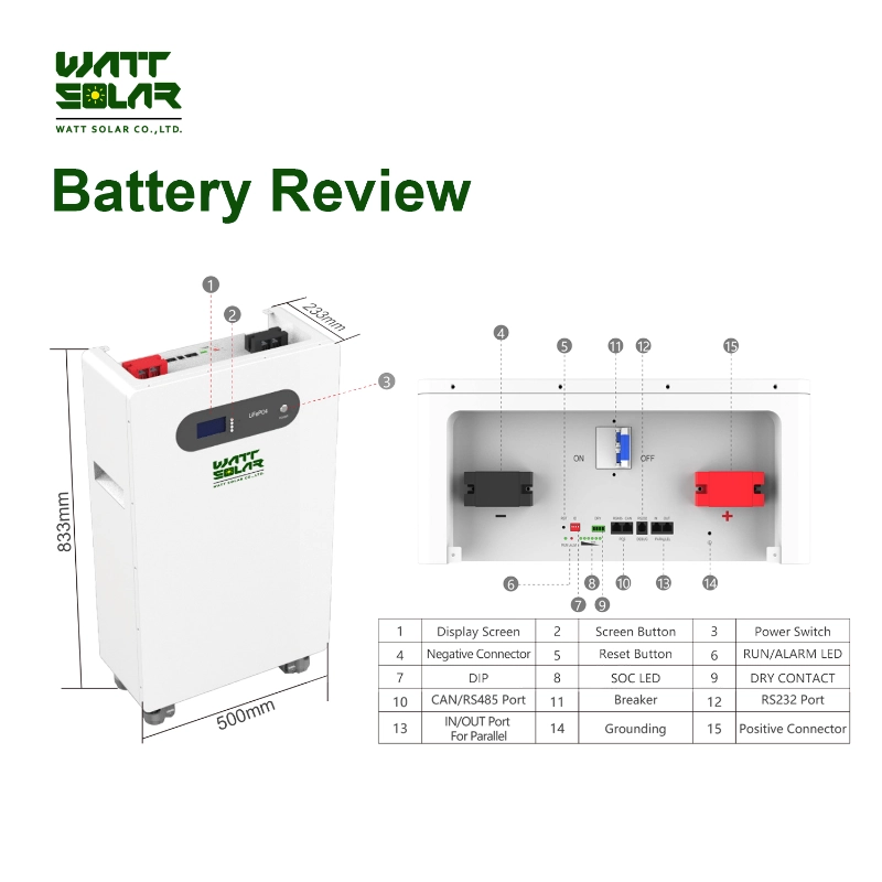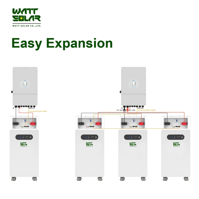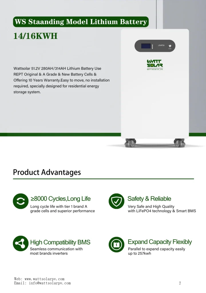 Wattsolar 51.2V 280AH/314AH Lithium Battery Use REPT Original & A Grade & New Battery Cells &Offering 10 Years Warranty. Easy to move, no installation required, specially designed for residential energy storage system.