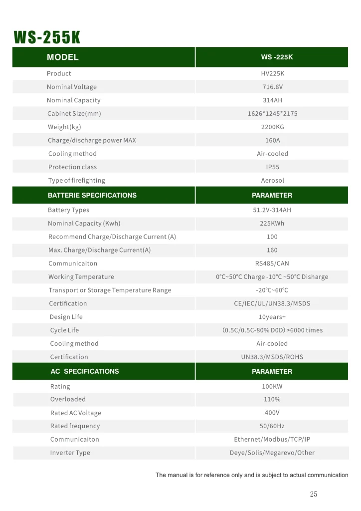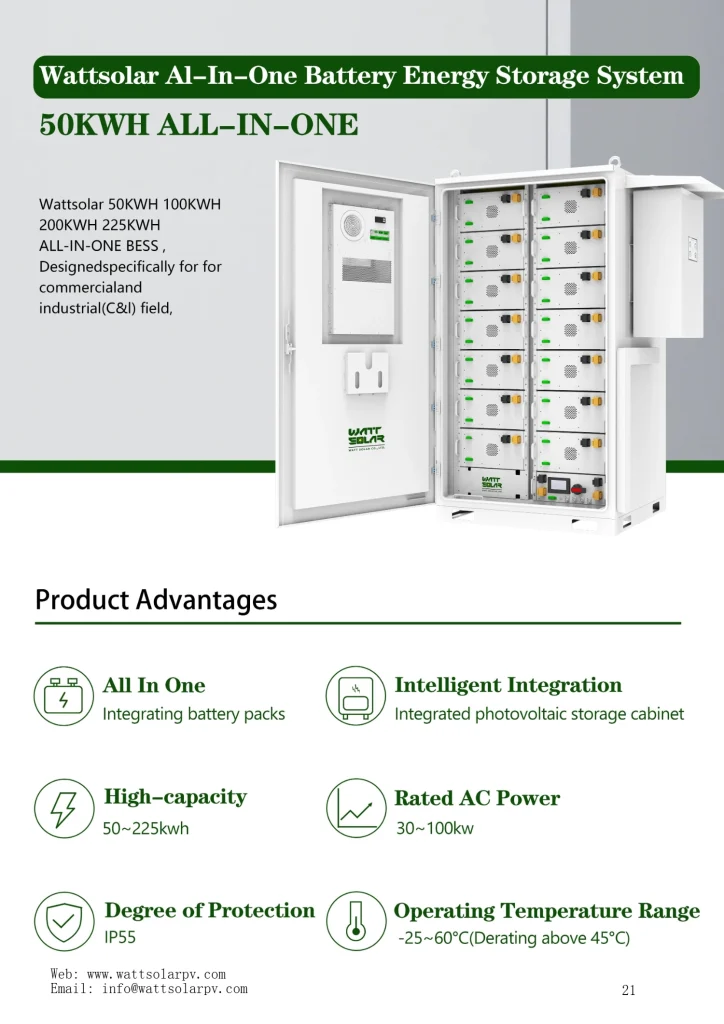Wattsolar 50KWH 100KWH 200KWH 225KWH ALL-IN-ONE BESS, Designed specifically for for commercial and industrial (C&l) field,