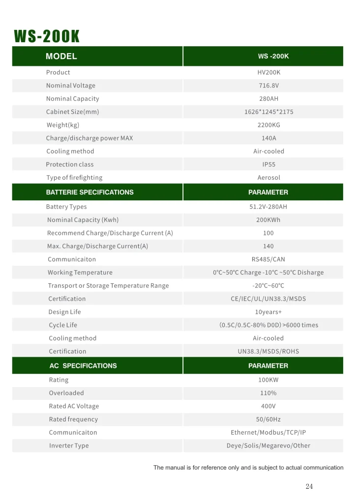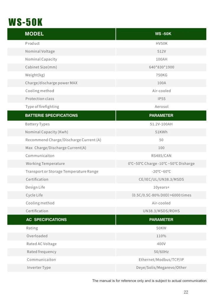 Wattsolar WS-50~250k 51.2V High-voltage Lithium battery